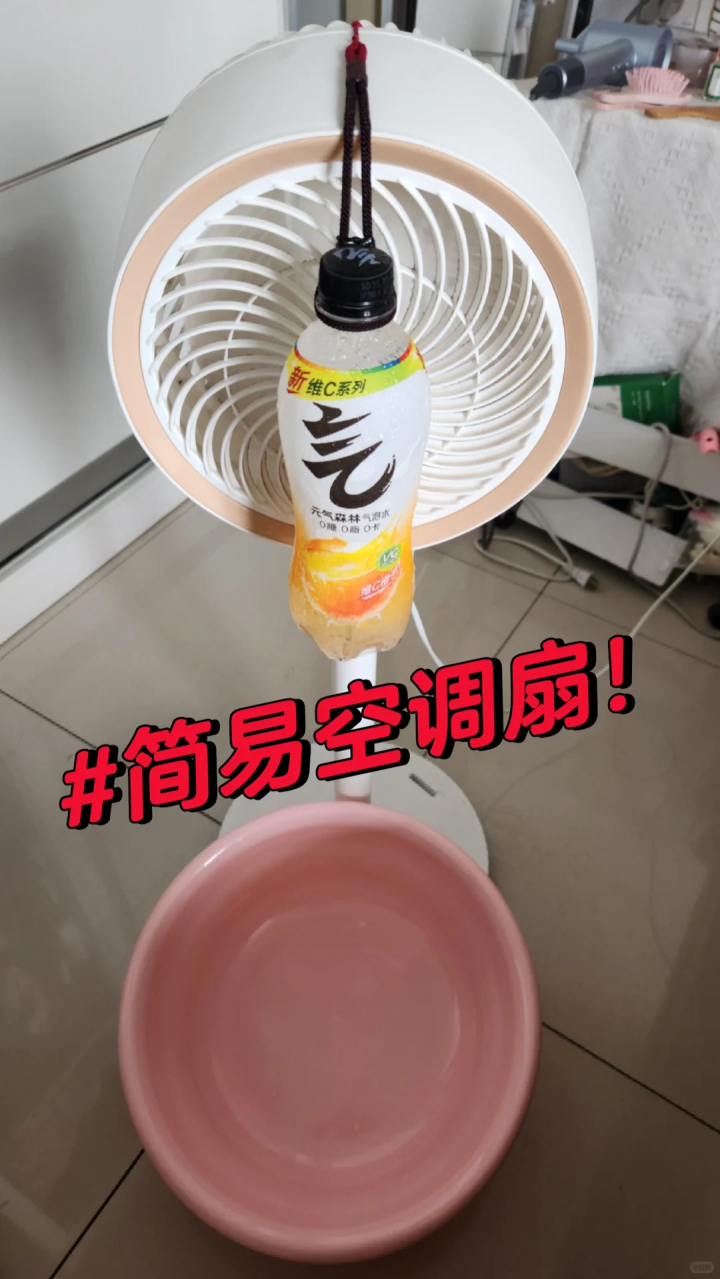 要么就用风扇,如果天气实在比较热,可以将装满水的瓶子放到冰箱里冷冻,然后再挂在风扇的前面,形成简易的空调扇。
