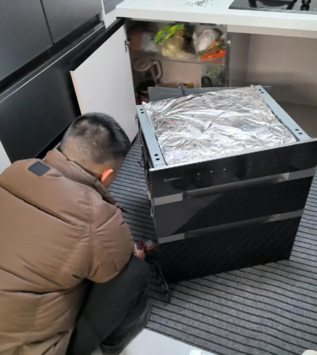 厨具和餐具虽然不能直接入口,但和直接入口的食物接触有可能会传染细菌和病毒,因此,为了健康和安全,打造柜子的时候,我就买了一台嵌入式消毒柜。